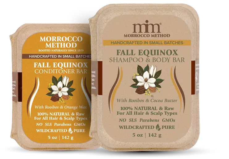 Fall Equinox Shampoo and Conditioner Bars are crafted to align with this seasonal energy, infused with Rooibos, Cocoa Butter, and Orange Wax to help restore harmony to your hair and scalp.
